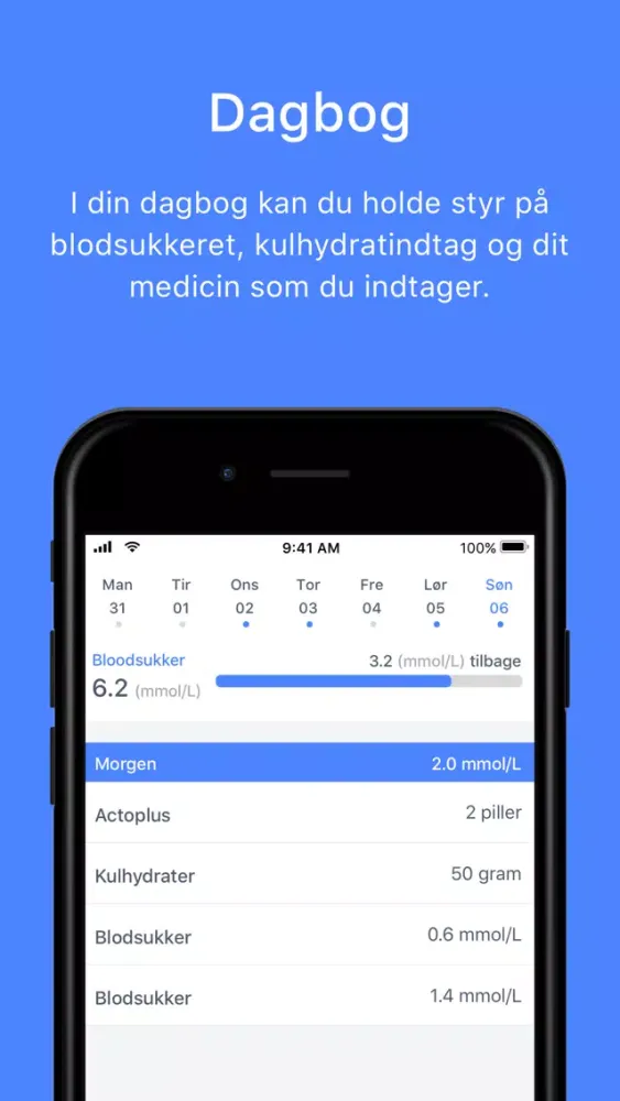 - At have en logbog over de vigtigste ting i din hverdag som diabetiker. Heraf; blodsukker, kulhydrater og medicin.