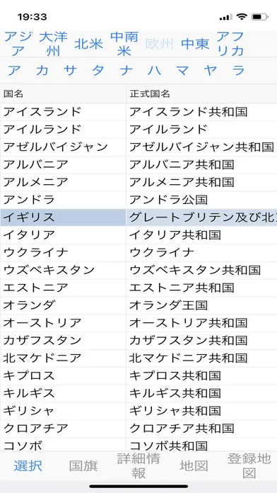 タッチした国の正式国名、首都、国旗、国の場所が表示されます。