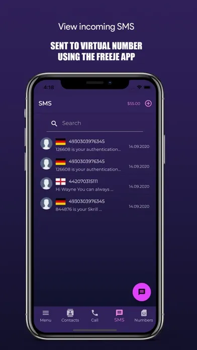 * Freeje does not provide any free or trial numbers for receiving SMS.