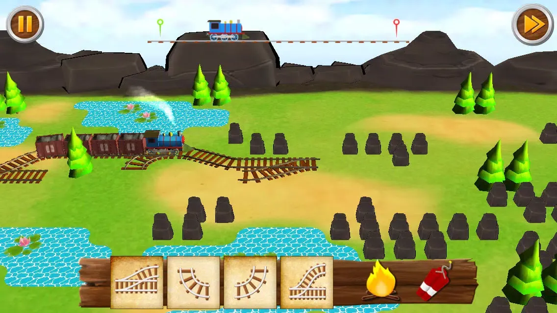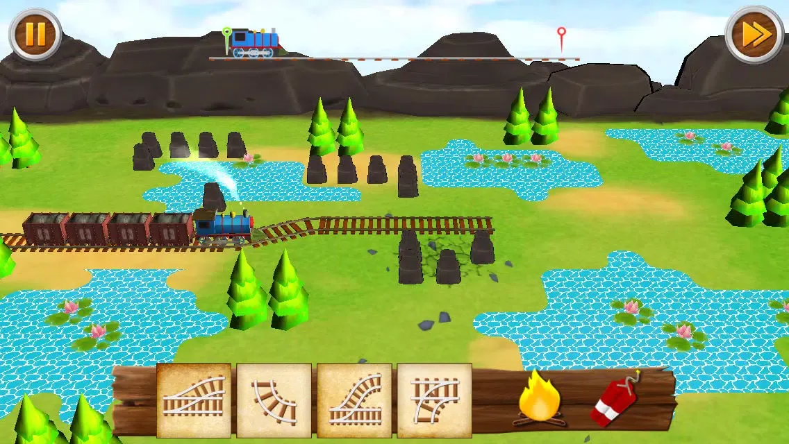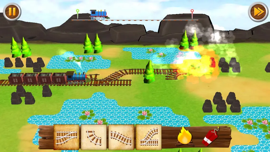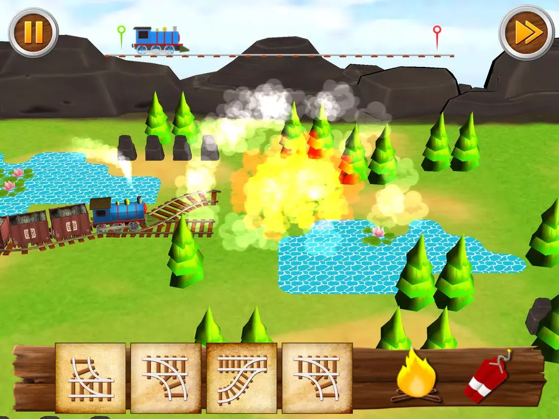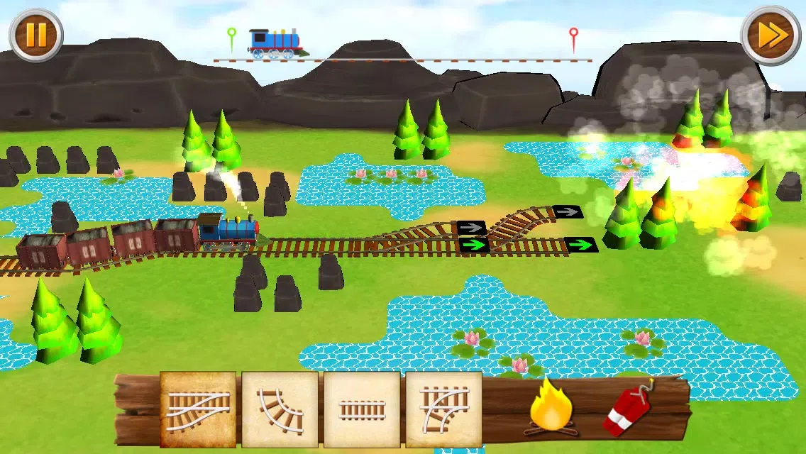 Use power-ups to blow up obstacles that get in your way and avoid water hazards, think fast and drop tracks quick or you’ll find your train in a deadly situation.
