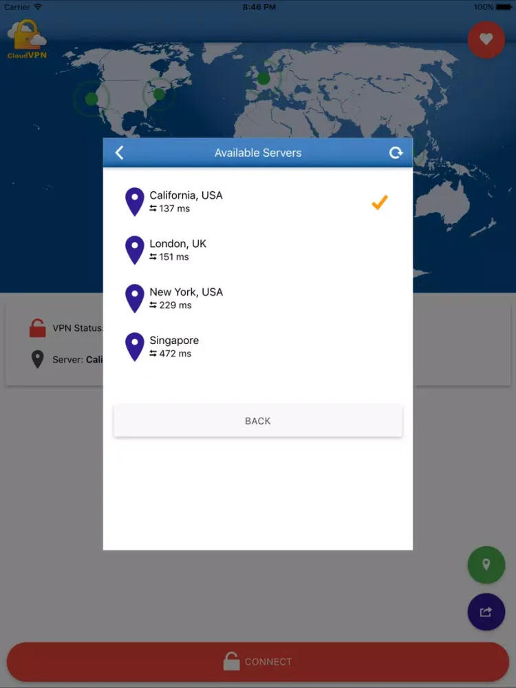 Captures d'écran de Cloud VPN : Hotspot VPN Proxy iPad