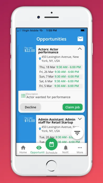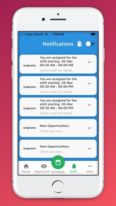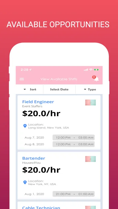 Alephants helps you find local jobs in events, arts and restaurants. Simply sign up, upload your resume and start getting opportunities near you. Once you are assigned you will be able to get notified of new opportunities, apply, check in, check out, and more right from the app.