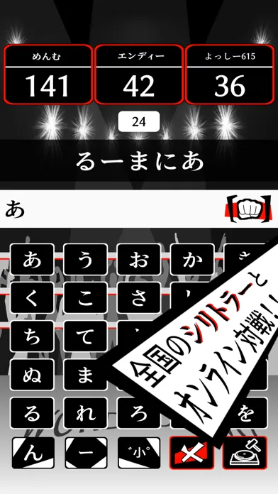 プレイヤーは、順番関係なく全員同時に『しりとり』を行います。