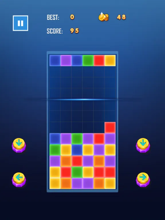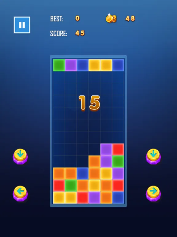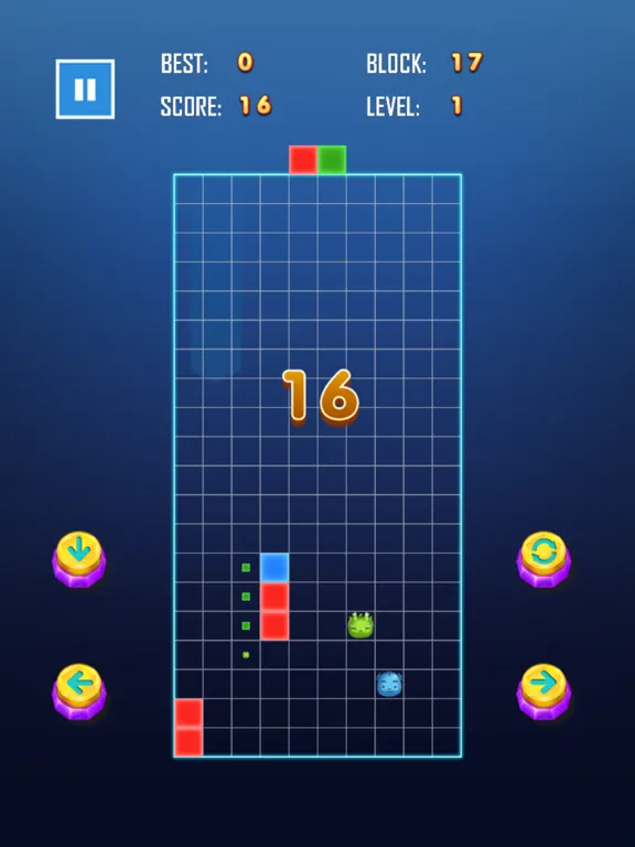 3. Falling mode: Control the color of the blocks left and right, and control the falling of the blocks up and down. More than three blocks of the same color can be eliminated.