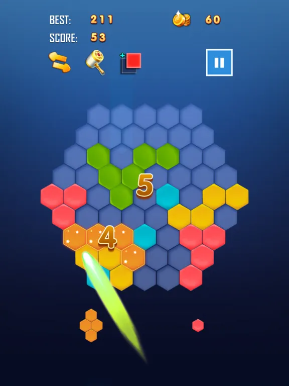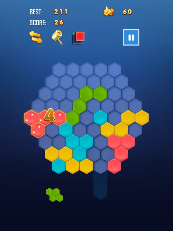 4. Hexagon elimination: The hexagonal gameplay in drag mode can be eliminated horizontally or vertically.