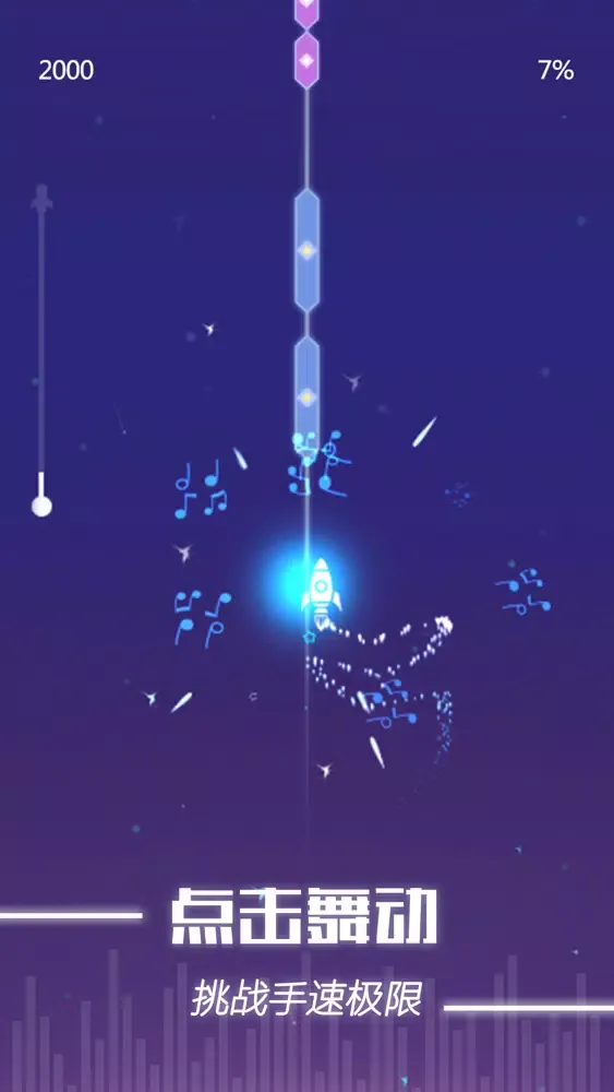 "Fingertips" is a magical brainwashing music game. ; The painting style is fresh and dreamy. Players need to click to follow the rhythm of the music to make the aircraft jump, guide the aircraft to continuously cross the rhythm point, and finally reach the end!
