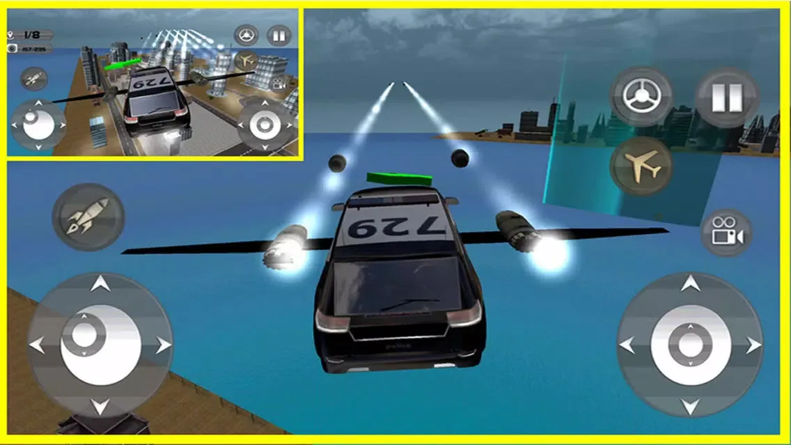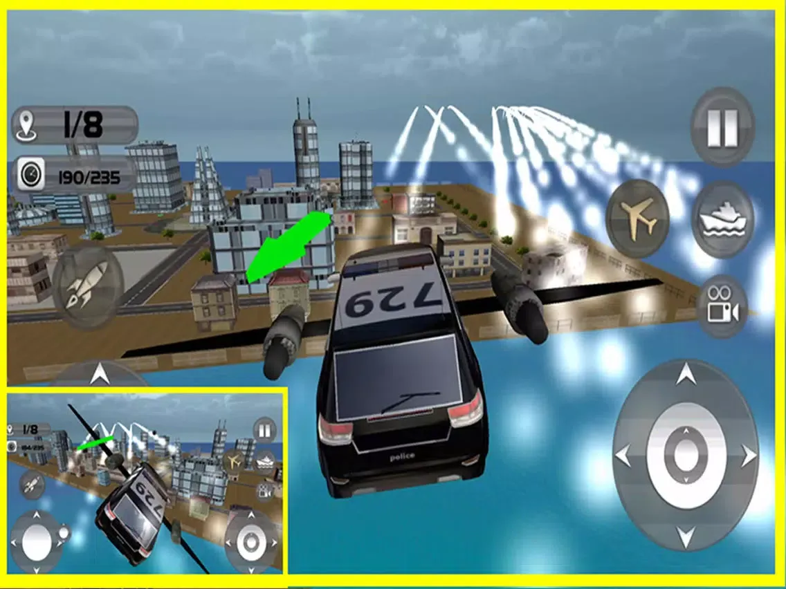 Select your police car in this flying police car game where you have to perform police chase missions. Perform stunts in the sky and ocean in one of the most exciting police car flying games with your flying police simulator. Feel like a pro flying car simulator driver and become the bravest cop in this most innovative flying car games free.