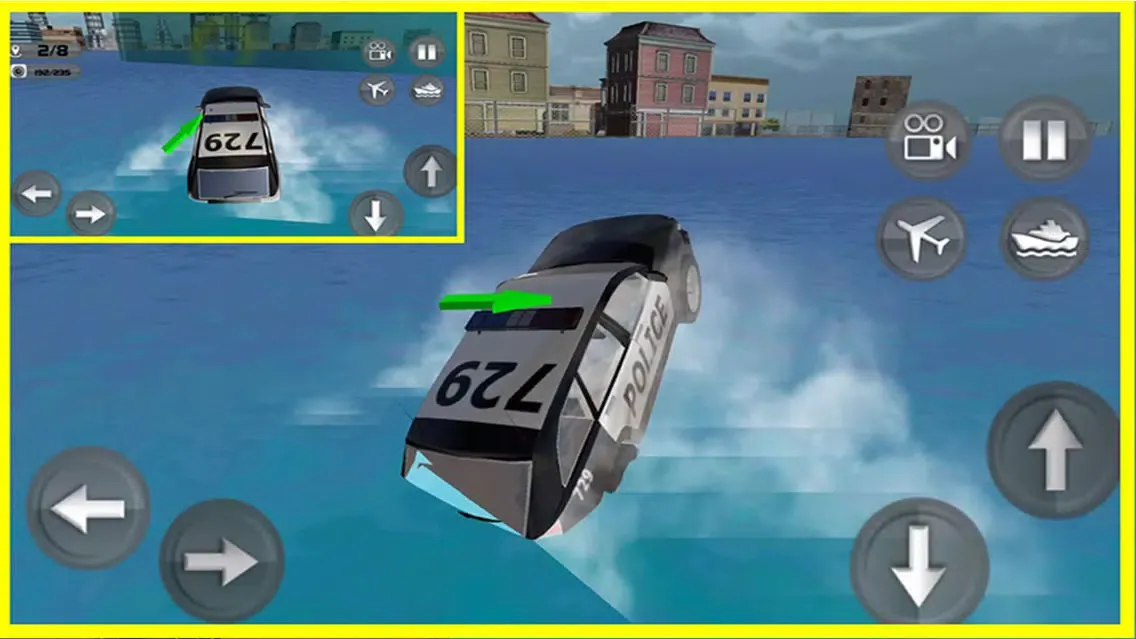 If you love flying police car games then this is the best flying police car simulator available on the store. If you are passionate about police car driving games and want to investigate criminal cases and ready to police car flying like an airplane then this police boat games is an adventure for you! Practice your airplane pilot skills and car driving and boating ability at the same time.