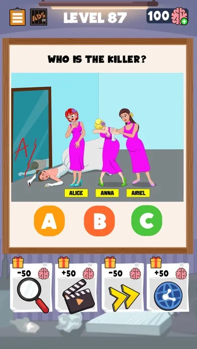 Thinking games and riddles will twist your mind and puzzle you. Do you have what it takes to beat each level? Who did it - solve riddles to find out who is who, who is lying and who is the culprit! Brain Master brings you the ultimate brain app with tricky puzzles in this, the best of thinking games and brain games.