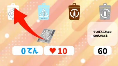 紙・空き缶・瓶などのごみを、制限時間内に同じマークのごみ箱に捨て、リサイクルするだけの簡単ゲーム!