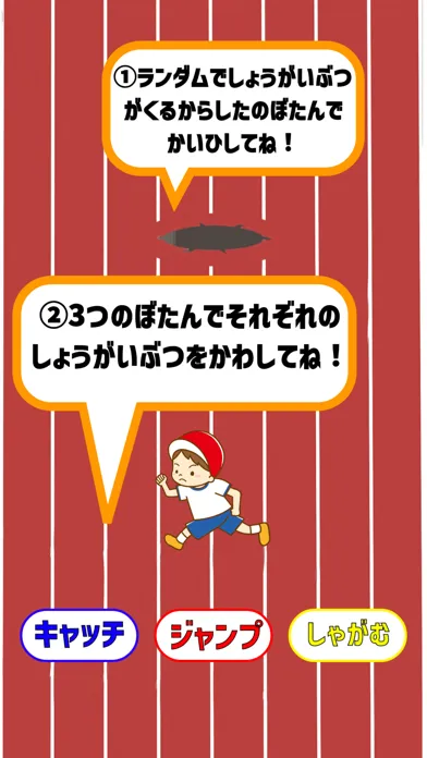 「キャッチ・ジャンプ・しゃがむ」ボタンをタップして沢山の障害物を乗り越えよう!