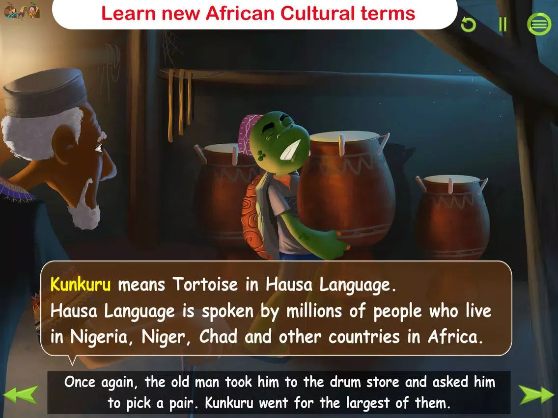 Follow the Tortoise on his adventures across various African Cultures. While at it, explore interesting features of these cultures: folksongs, names, dressing, sceneries and more.