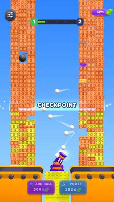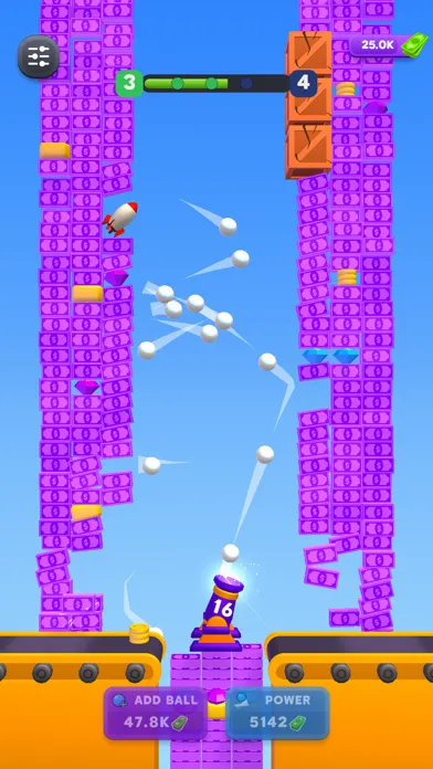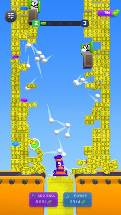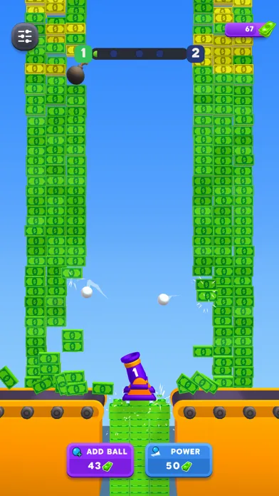 Your goal is to stack the coins below you by shooting at the money towers on either side.