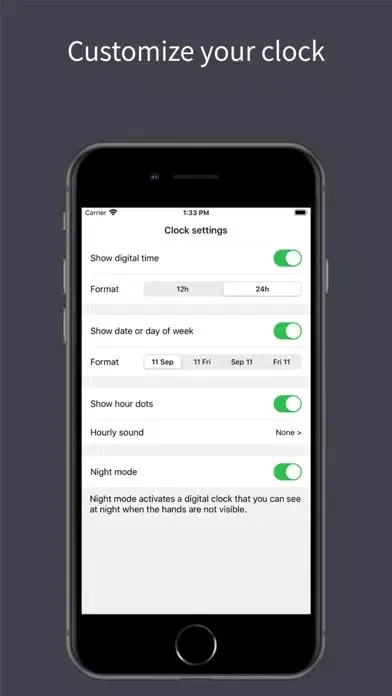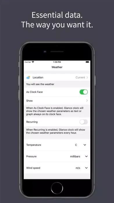 The Glance Clock App can configure the clock to show:
