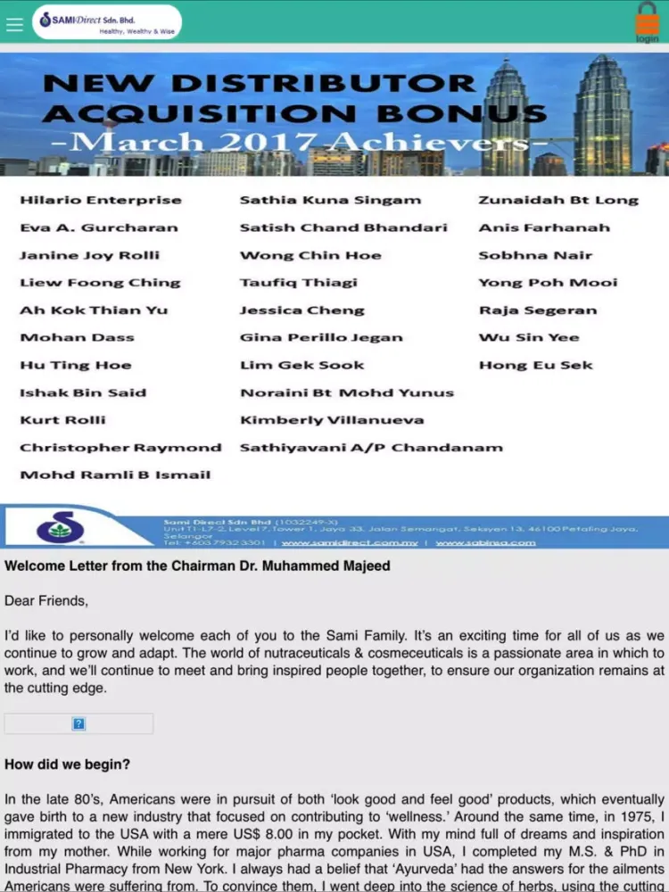 For over 25 years, the Sabinsa & Sami Group has been unlocking the mystery of herbs, extracting the goodness, and gifting the world with good health. Now we provide YOU an opportunity to unlock the mystery of Success, Wealth & Better Living.