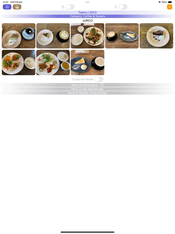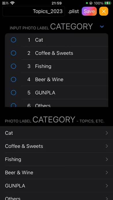 本アプリの特長は、写真のメタデータ等を編集することなく、写真にカテゴリや詳細情報をラベル付けすることができる機能です。