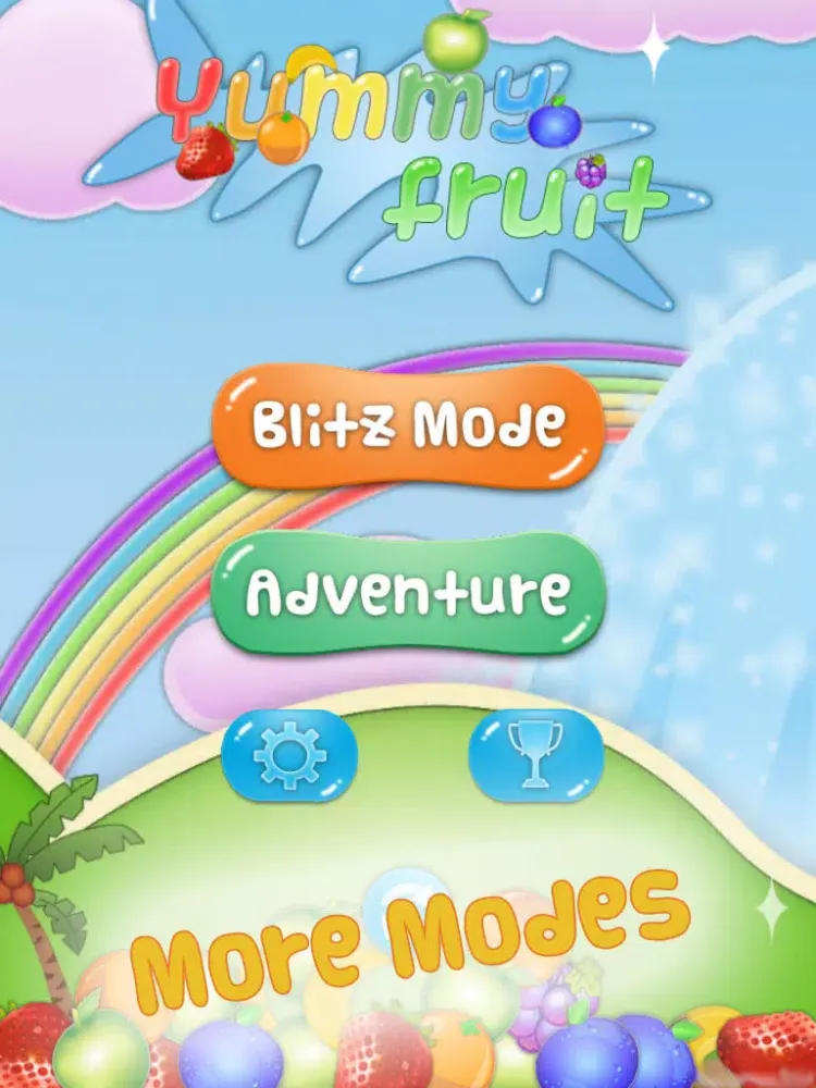 - Blitz mode will give you 60 seconds to play, match 3 same fruits to get scores, match more 3 same fruits to earn more seconds or combo score, the effects are really really nice. During playing game, game will automatically get the friends who have the score larger than you to challenge with them. After ending game, you can view the ranking of your Facebook friends.