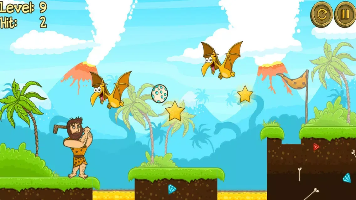 Each level presents a different challenge and obstacles. The difficulty starts off easy, but gets progressively harder and you must time your shorts right to avoid the different traps. The controls are simple - all you have to do is touch and drag your finger to alter the power and direction of your swing. Can you score a hole in one and become a pro prehistoric golfer?