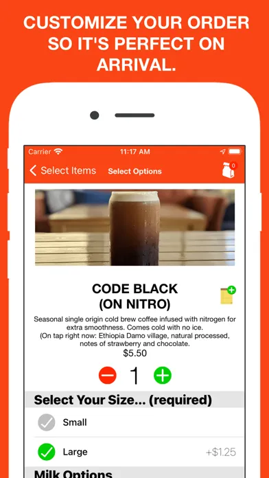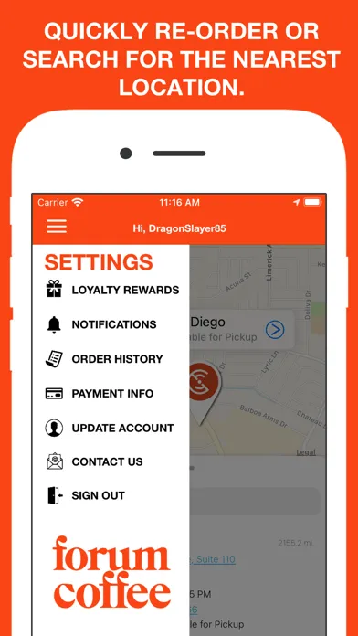 - Pay through the app with one-tap ordering