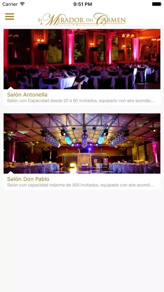 Inmersos en un ambiente natural y distendido, la funcionalidad de los salones Don Pablo y Antonella que te ofrece El Mirador del Carmen te permite realizar el evento que siempre soñaste brindándote propuestas a medida de acuerdo a cada necesidad.