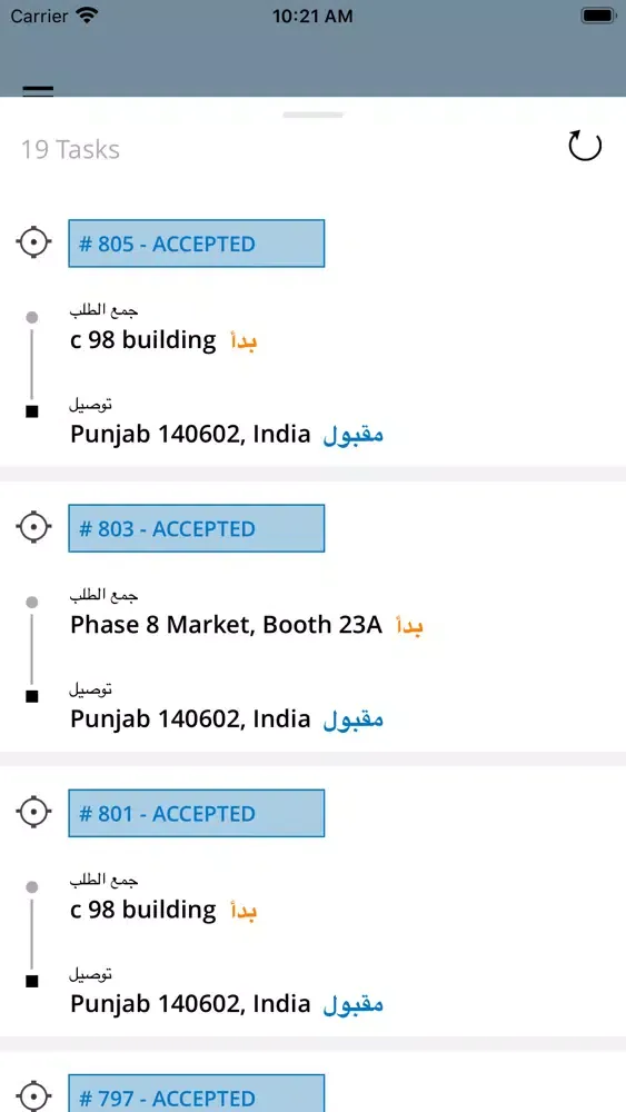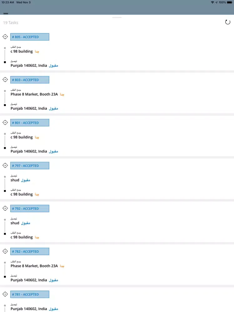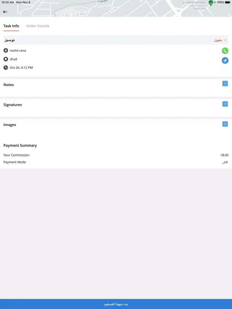 - تحديث حالة المهمة لإخطار العميل والمدير طوال مهمة التسليم