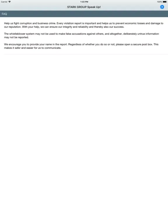 STARK GROUP Speak Up! FAQ