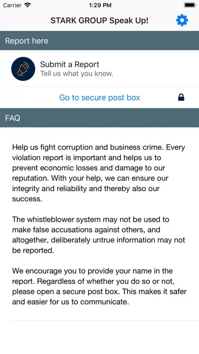 - This app allows you to raise concerns on any irregularities or improper actions that have been committed, are suspected or likely to be committed, or actions that do not comply with laws and regulations, the Stark Group Code of Conduct or internal policies. The reports are handled confidentially, and anonymity is ensured for those that wish it.
