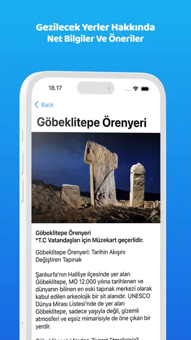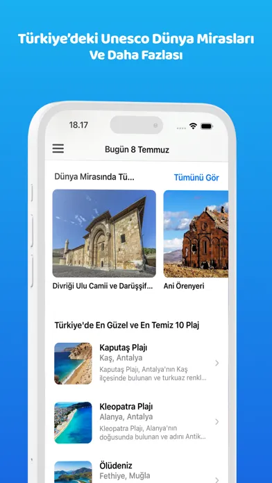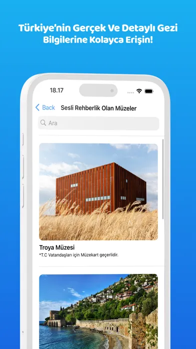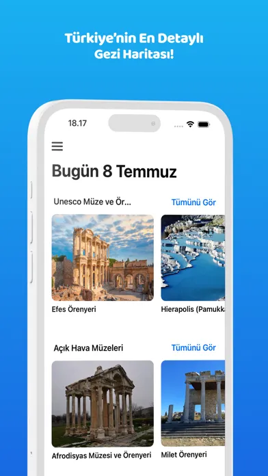 Özel Tavsiyeler ve Keşif Rotaları: Uygulama, Türkiye'nin en güzel plajlarından birinci sınıf arkeoloji müzelerine kadar geniş bir yelpazede öneriler sunar. Seyahatseverler için öne çıkan 10 müze, en temiz plajlar gibi özelliklerle ilgili detaylı tavsiyeler sağlar.