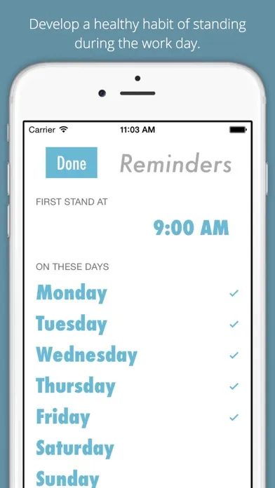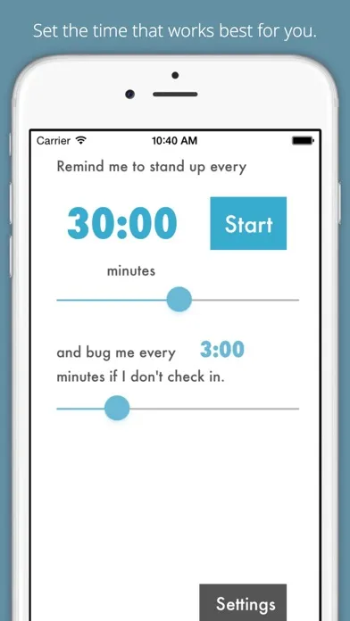 Not quite ready to stand up when an alarm goes off? No problem, Stand Alarm will remind you later based on your schedule preferences.