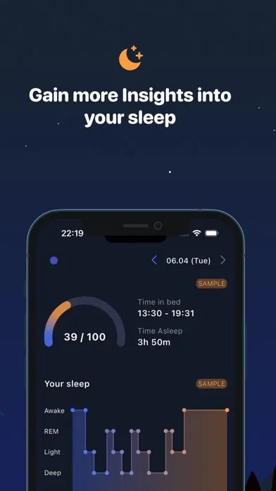 Arise revitalized and energized with Moonly's groundbreaking alarm feature. Plus, stay informed about your sleep quality with the snore detector, ensuring you're always in tune with your nighttime habits.