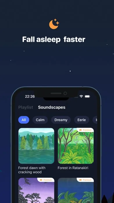 Step into a world of blissful slumber and tranquility, guided by the mesmerizing melodies of Moonly's groundbreaking sleep sounds. Welcome to Moonly: the ultimate sleep-tracking app revolutionizing your journey to a restful night's sleep like never before.