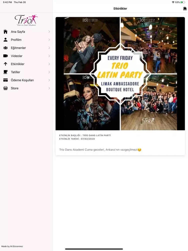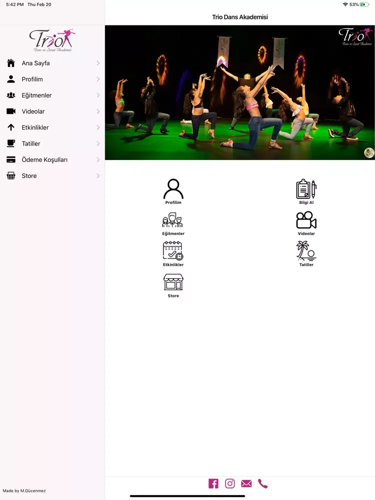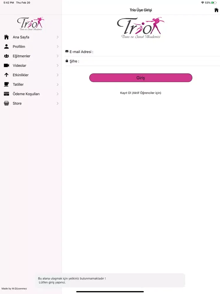 Bu uygulama Trio Dans ve Sanat Akademisi için geliştirilmiştir.