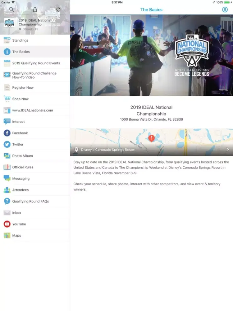 The IDEAL National Championship app is your official source for all event info, schedules and updates on the nation’s top competition for electricians. Receive updates on everything from the Qualifying Round Events hosted around the country to the IDEAL National Championship Finals November 4-5 in Nashville, TN.