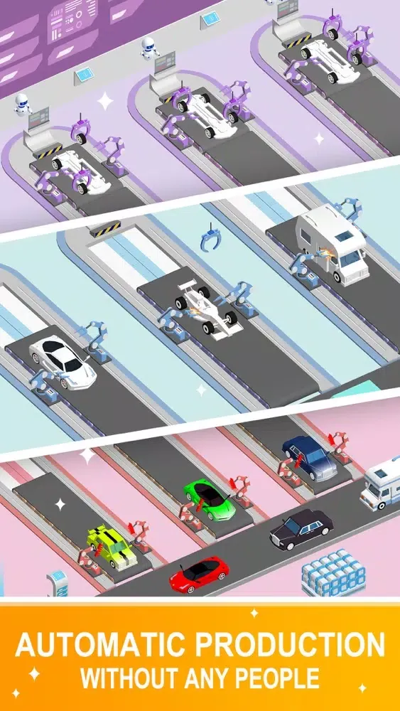 Become the boss of a fully-automated car factory and you can see the interesting process of assembling cars.