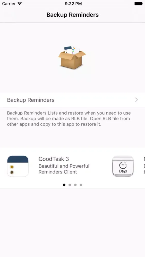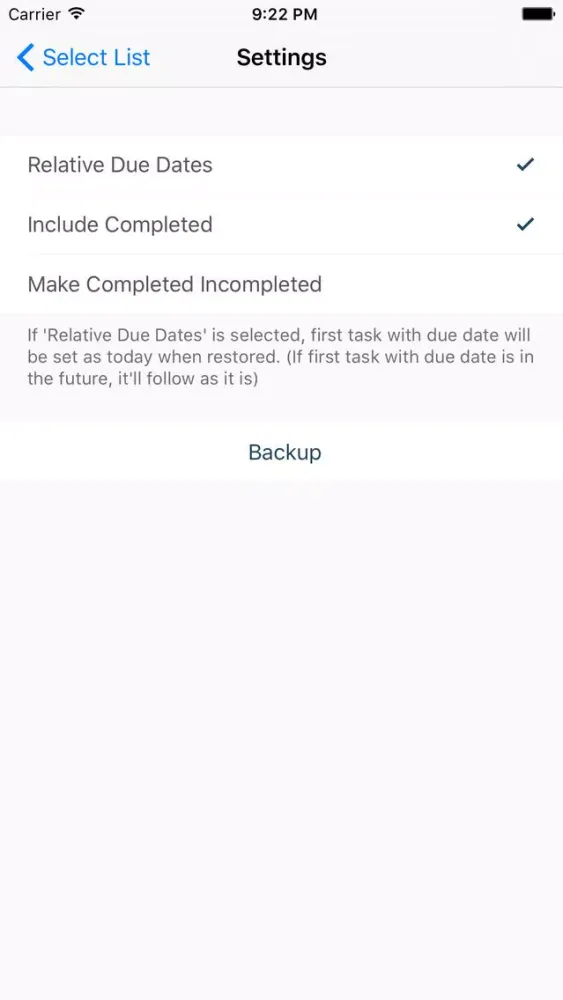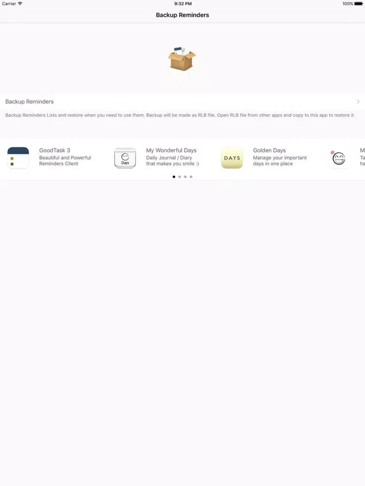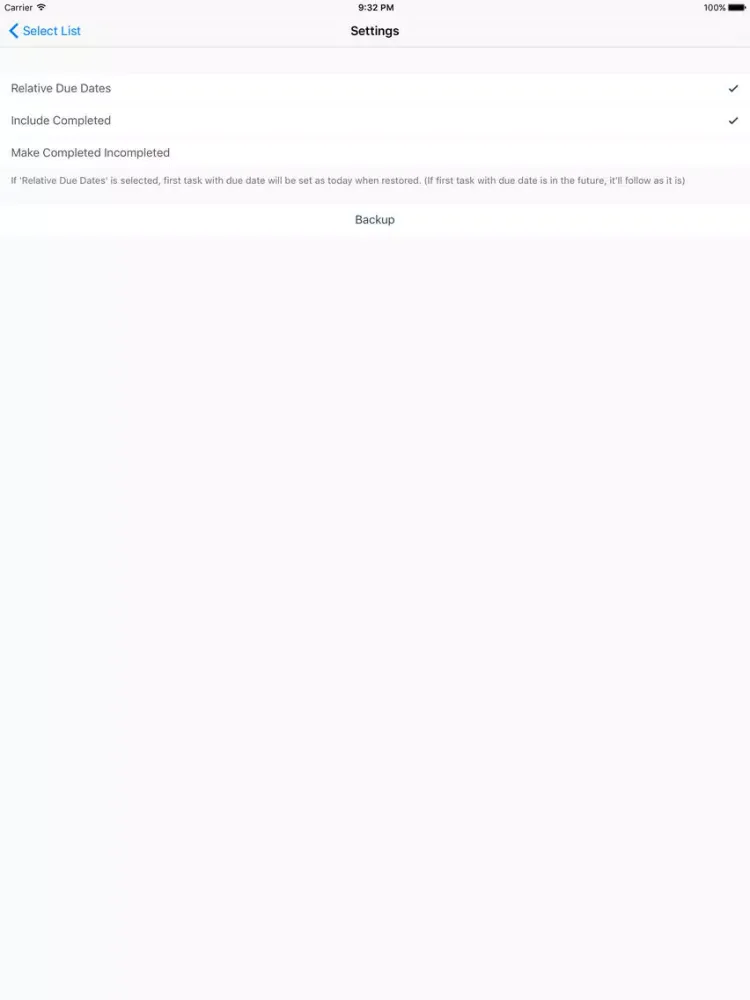 Tangkapan layar Backup Reminders Lists & Restore Data iPad