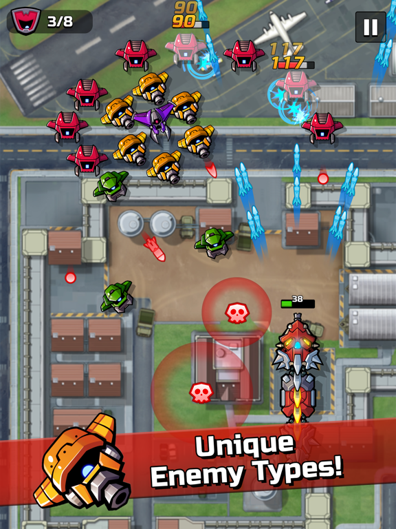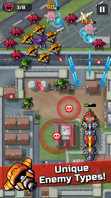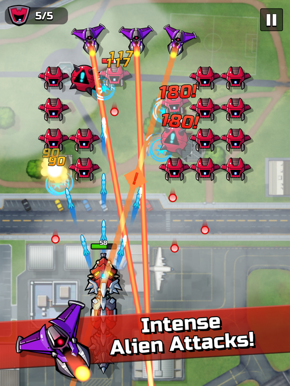 The mega monster returns in a hectic shoot-em-up showdown against some mighty angry aliens! Swipe to dodge incoming attacks as you power up your weaponry by choosing the upgrades you want!