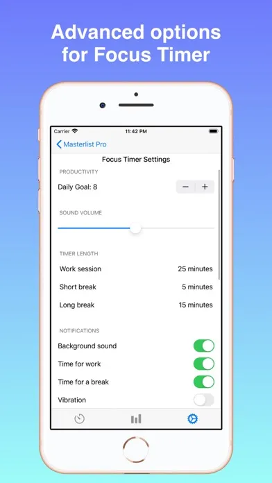 Masterlist: Focus & Tasks is your ultimate task manager and productivity tool. Combine advanced to-do lists, reminders, and a customizable Pomodoro Timer to stay organized and focused.