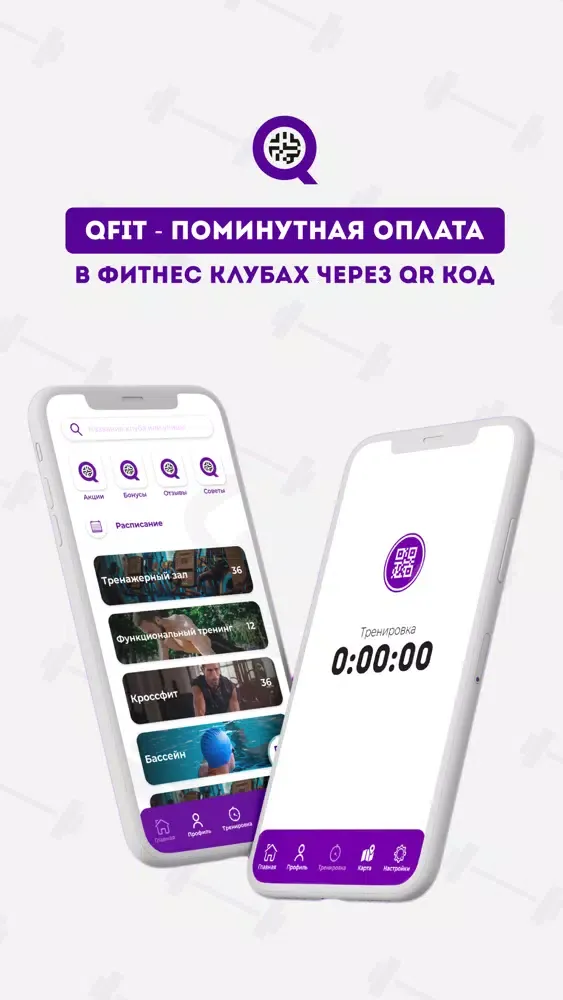 QFit предлагает поминутную оплату в лучших клубах Казахстана.
