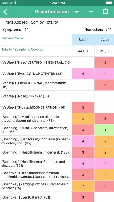This app brings to you impressive filters to make your Repertorisation effortless. Selectively repertorise by remedy property, mineral, drug mark, author filters and minimize your search for the appropriate Homeopathy remedies.