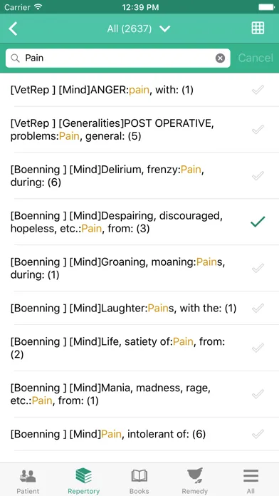 Easy search options let you browse through thousands of rubrics across latest and most authentic Homeopathy repertories like Veterinary Repertory by Dr. Surjit Singh Makker, Kent & Boericke. Record the precise rubrics with just one touch and get the best Homeopathic remedy in the shortest time.