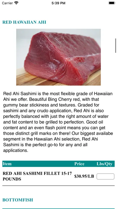 Honolulu Fish Company wholesale ordering app - 20lb minimum orders