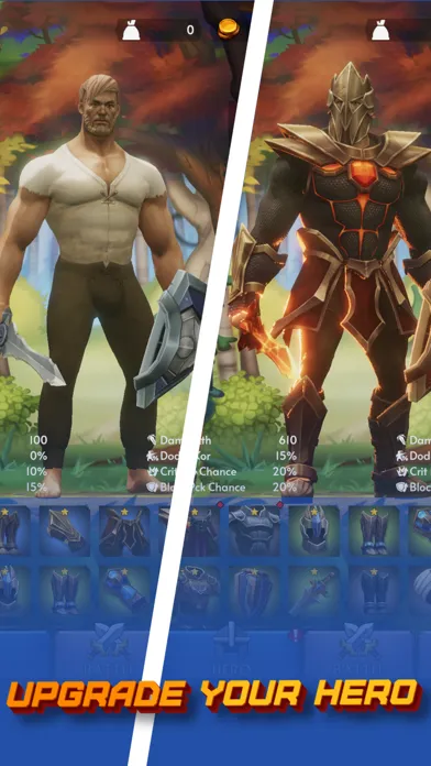 Customize your hero by collecting legendary equipment and weapons to improve battle powers.