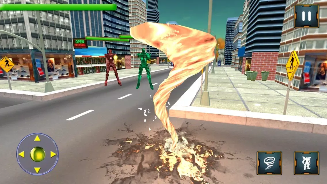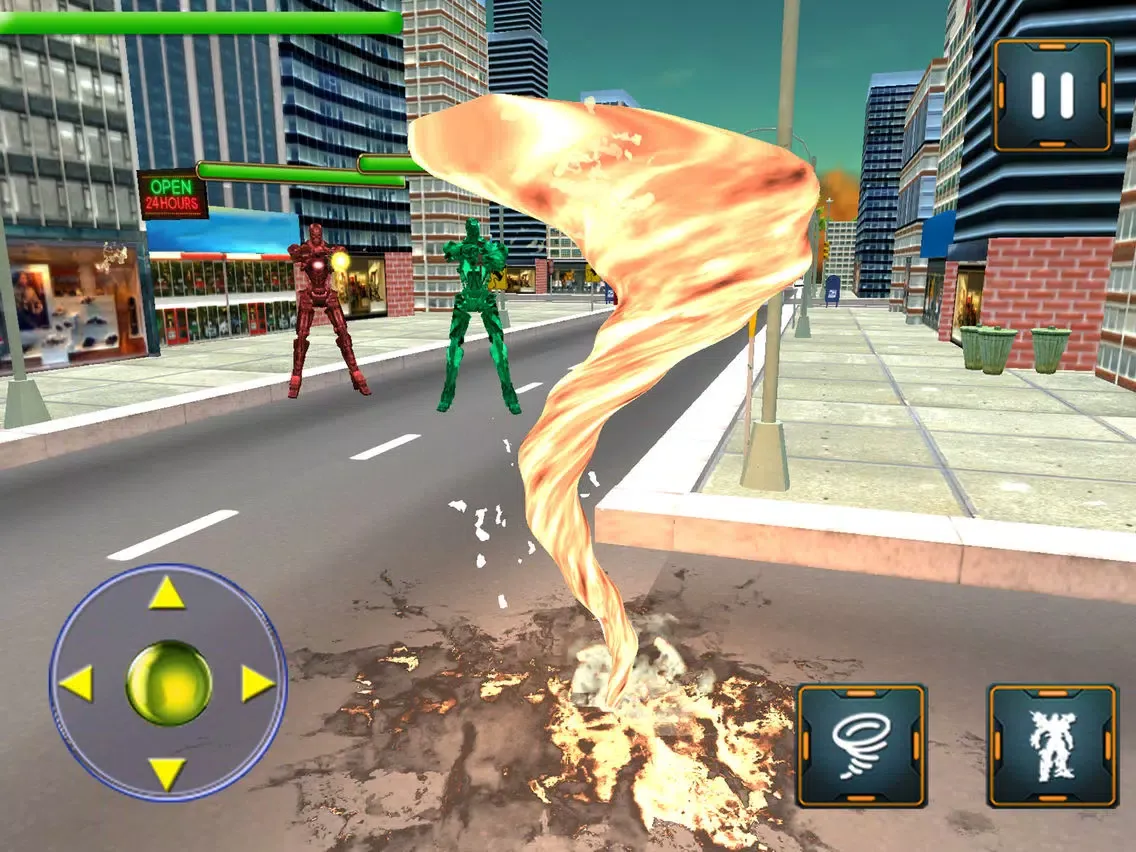 Alien robots have attacked on your city and people need your help. They know that you are the only one robot who can transform into tornado to defeat the wave of alien robots. They are destroying the buildings and offices, now go and kill the enemy robots. Transform into tornado hero wherever you want to win each mission.