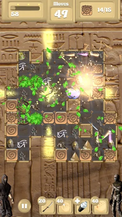 Special Match 3 levels with Weeds that grow, Stones and Egyptian items that fall, LadyBirds, Branches, Water, Jelly, Walls and Blocks.