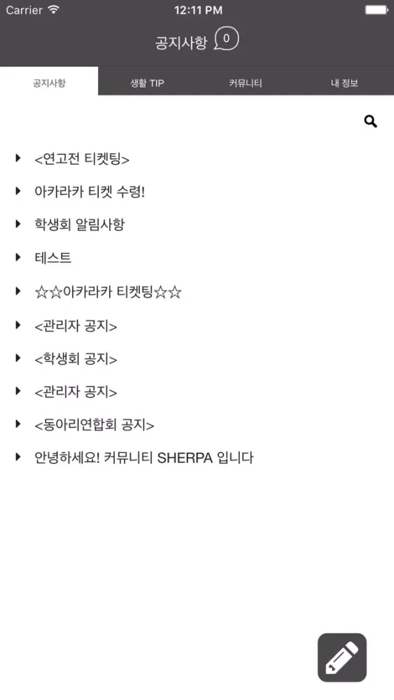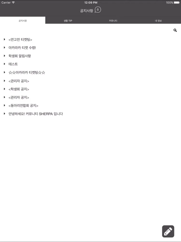 연세대학교 커뮤니티 어플리케이션, SHERPA 입니다!!