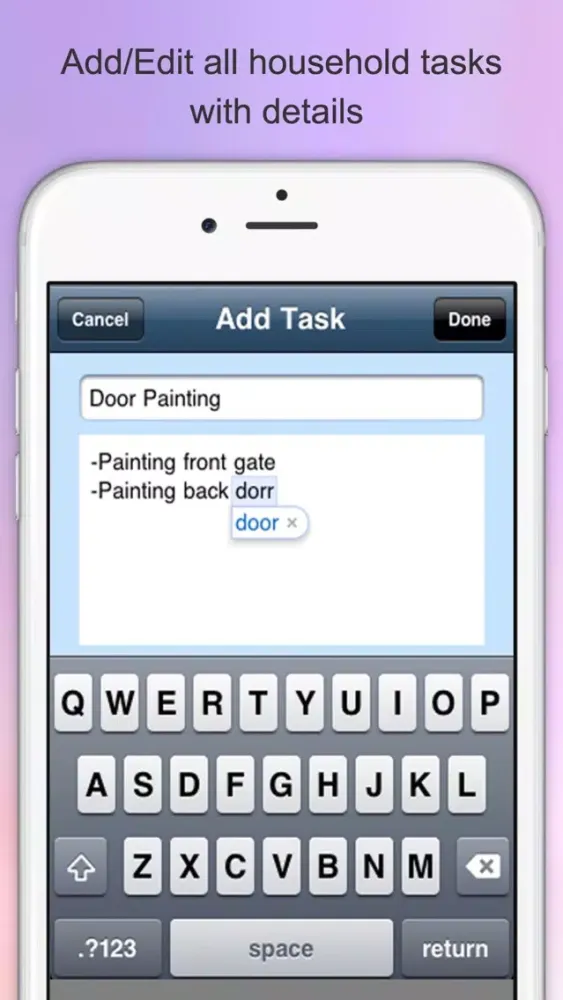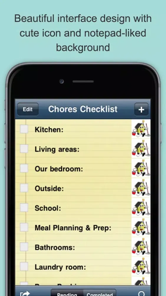 (9).The apps come with following pre-loaded chores list (categorized by areas in your house) for your convenience. You could always add new chores task to it as much as you like !