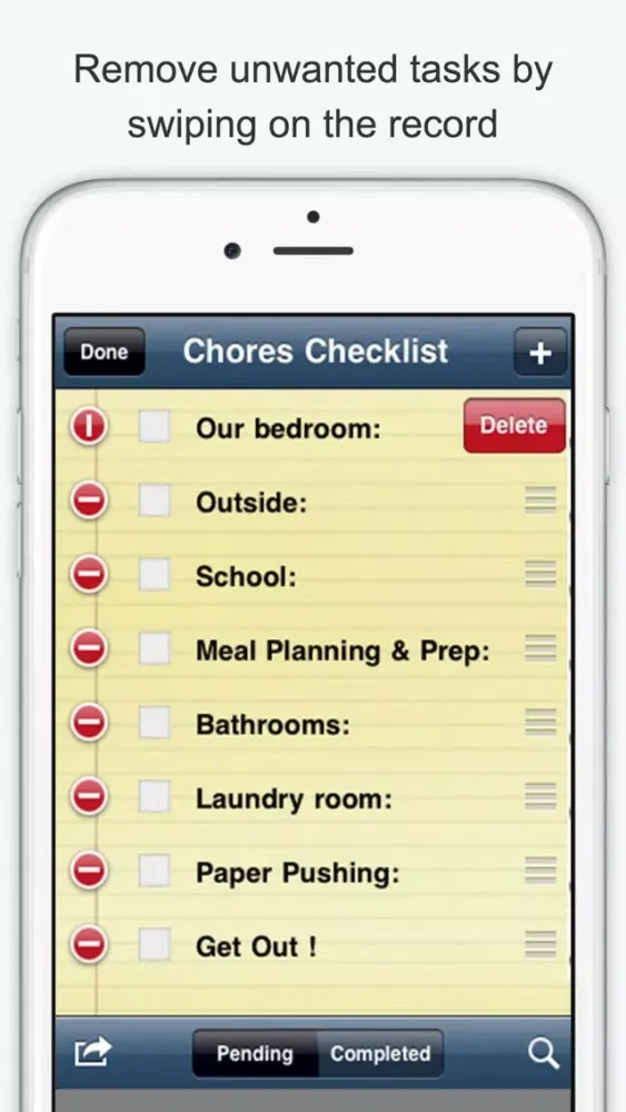 Household Chores Checklist t is a solution to track and monitor your progress of different house chores tasks. You could build a list of tasks which need to be done regularly every week or daily, use it to track completion and reset it into pending task list again .It is simple, easy to use and yet powerful apps !