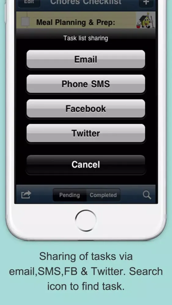 (8).You could send list of pending/completed task list using Email,SMS,Facebook & Twitter !