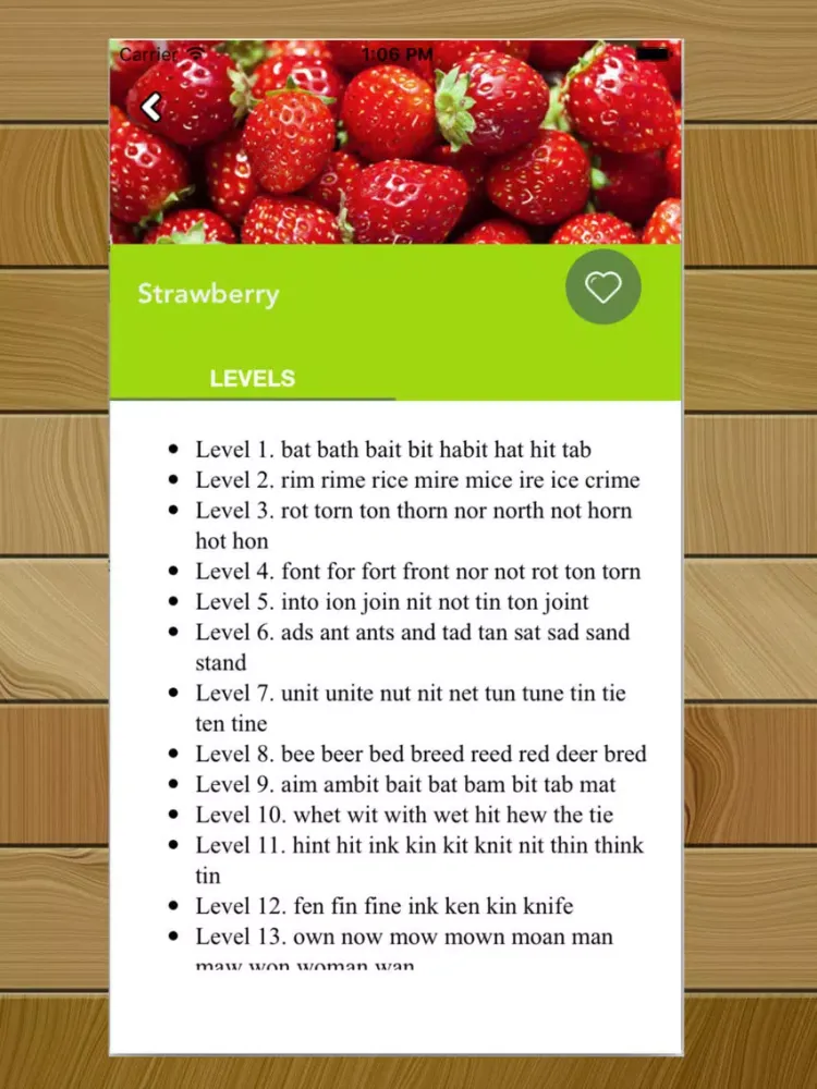 • You will find the list of word for each levels