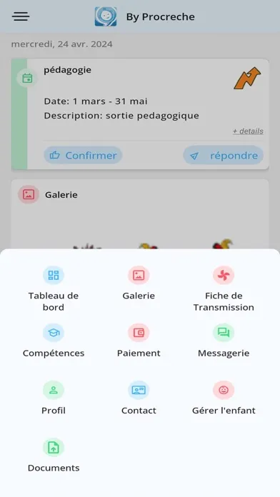 Vous serez informés des principales activités : les messages importants, le programme pédagogique, l’évolution de votre enfant, les moments forts (photos, activités pédagogiques,…), les évènements à venir (sorties pédagogiques, carnaval, vacances scolaires,…), le menu cantine, notre règlement interne, et même des informations pédagogiques qui vous permettront de mieux appréhender l’univers de la crèche et de la petite enfance.